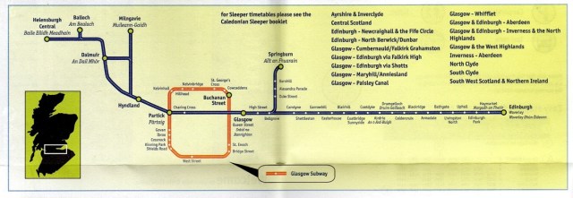 Though it worked fine, I must admit to disappointments. For a start, they’re using SPT stock, whose livery was designed by the colour-deaf and which offer nothing by way of tables, space or trolley service. Add in that it takes almost an hour and a half to get to Queen St (low level) as it stops at every lamppost between Blairhill and Belgrove.
