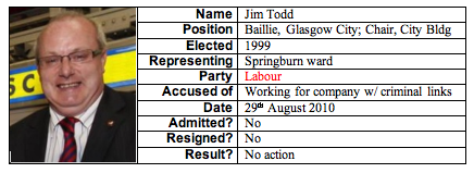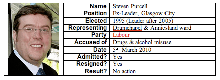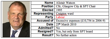 Research for my previous post (Oxter Award) exposed some pretty dubious council fauna in dark corners, especially in and around wur Dear Green Place. The broad range of accusations makes some form of ranking necessary and so I have awarded ‘black marks’. NOTE: those exonerated by either the courts or Audit Scotland (an astonishing 15 each in Glasgow and South Lanarkshire by the latter) are zero-rated.
