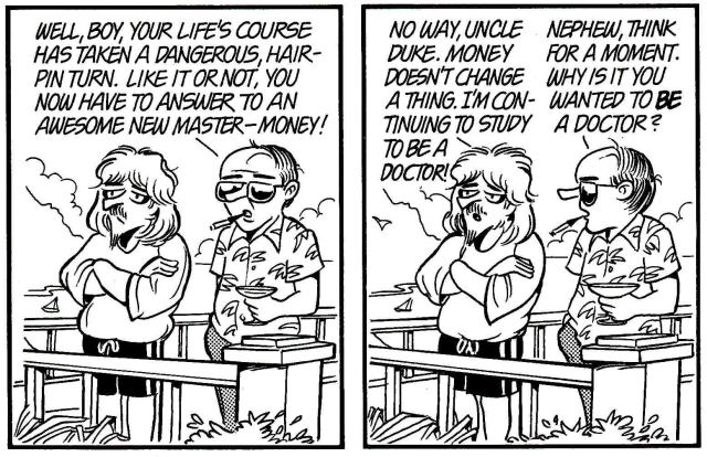 Such whippersnappers are also unlikely to have heard of Hunter S. Thompson, subject of Terry Gilliam’s misguided 1998 stab at capturing his eccentricities in Fear & Loathing in Las Vegas and of Alex Gibney’s penetrating 2008 documentary Gonzo: the Life & Times of Dr Hunter S. Thompson. He provided the model for the ever-outrageous “Duke” in Gary Trudeau’s internationally syndicated cartoon saga Doonesbury. But he knew a thing or two about politics and what drove the people who chose to be in it.