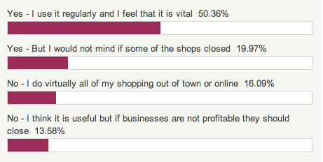 A survey conducted among Torygraph readers—not the most communitarian selection of people to ask—still came away with a resounding seven in ten using their high streets and keen on having them survive: