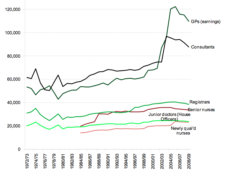 Salary Averages in £ sterling of NHS Medical Posts 1972 -2009 (Source: Pay in the NHS)