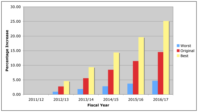 The charts above already show the original and worst-case scenarios. Calculating the best would give a replacement table 4b as follows.