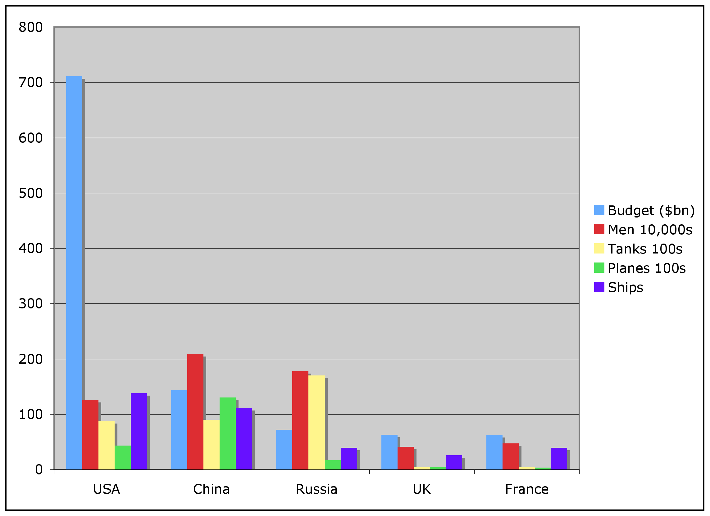 With the scrapping of aircraft carriers, long-range maritime reconnaissance aircraft, Harrier jump jets and shrinking of army battalions and RAF squadron numbers, the UK is in danger of becoming a third-rate power with a fig leaf of the minimal level of nuclear capability to argue itself the “place at the top table” that Fox, Murphy et al always tout as so important. But, consider this chart: