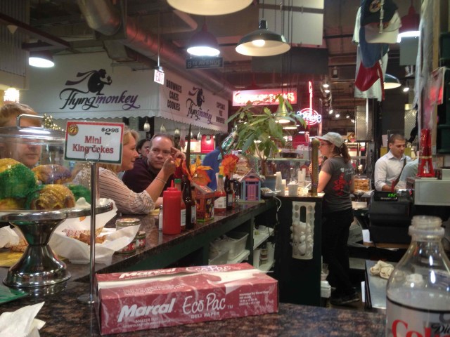 My first great discovery was the Reading Terminal. Originally a train station, the basement has become one the best market and exotic food emporia I have seen. It compares to Faneuil Hall in Boston but it’s less tasteful, more lively and easily more exotic. We plumped for Beck’s Cajun Cafe and tried to deal with a Train Wreck sandwich that had andouille sausage, carmelised onions, peppers and could have choked a horse. Billed as “what a Philly Steak sandwich wants to be when it grows up”, it defeated me after a half hour of plucky effort.