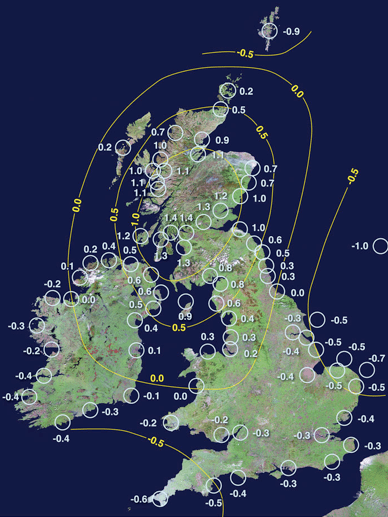 The Coastland Map: Changes in Land Levels (source: University of Durham)
