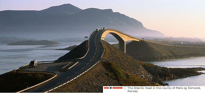 But the key message Lesley brought was one of attitude. Norway faces far more complex civil engineering problems than Scots in linking our country together. Not only have their main rail lines to Stavanger, Bergen and Trondheim all been electric (efficient & green) for decades and coastal communities linked by the daily ferry (see above) but they have been furiously improving their road net and now have almost 100 major bridges and a spectacular stretch of road called the Atlantic Road that they claim to be the most scenic stretch in the world. Though I hae ma doots on that last one, it is typical of their can-do attitude.