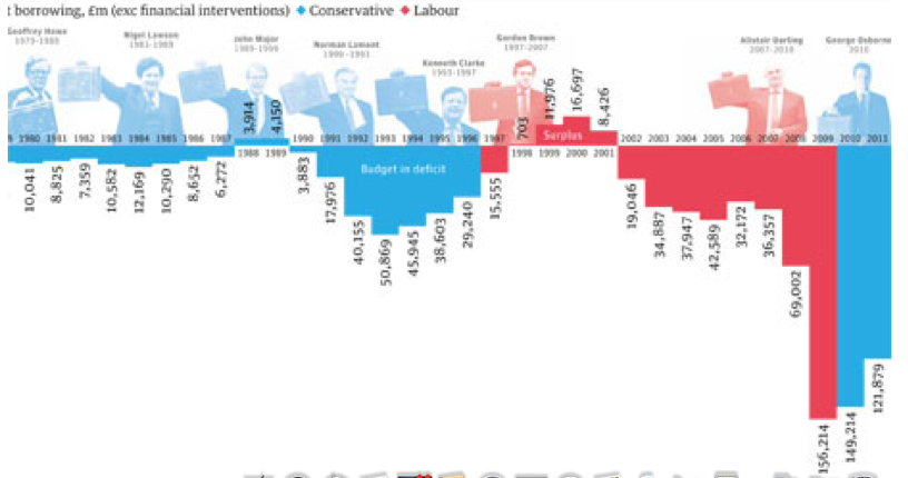 The financial shakiness of Tory tenure under Lawson in the eighties and Clarke’s in the nineties did pay off with eventual surpluses. But what Brown and Darling got us into in the noughties is on a scale that boggles the mind as well as the banks.