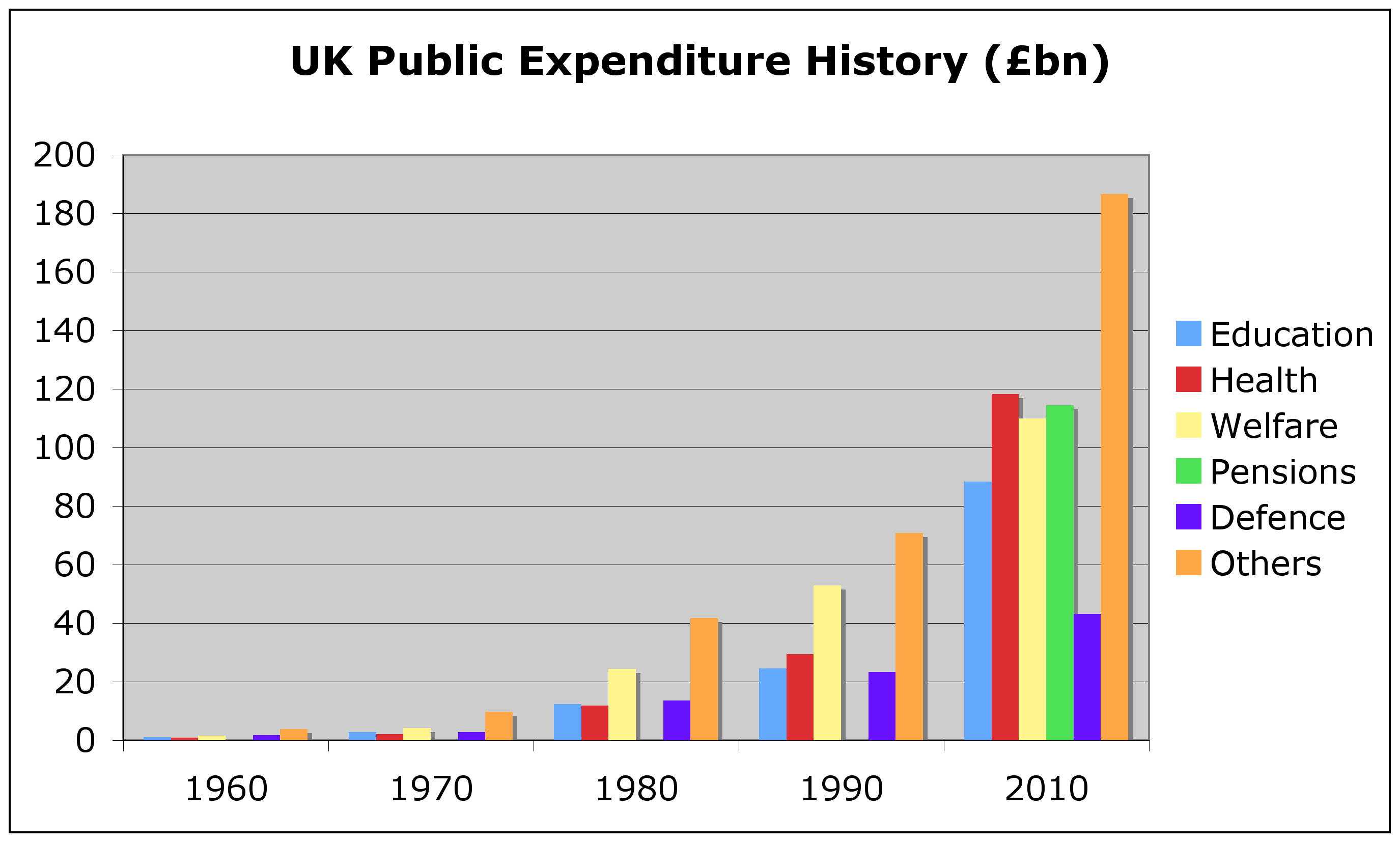 So, is he being a big girl’s blouse or is it time for the hair shirt? Judge for yourself. In the last fifty years—since MacMillan told a booming Britain that they’d “never had it so good” there has been a ballooning of government expenditure. This is shown in Chart 1 below.