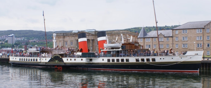 And, rather than bulldoze a rich architectural heritage, many solid stone-built edifices live on in new roles. Particularly impressive is the Custom House area of Greenock which leads on the container port and cruise line terminal. Tastefully landscaped and cobbled, it includes a Premier Inn, The Waterfront Complex and Cinema and the Western College campus. This leads onto a fine wide promenade west (to Battery Park and Gourock) that outshines Portobello and has massive recreational potential. Here, with green banks to develop and, calm, wave-less water, the potential for watersports—kayaking, skiff rowing, paddle-boarding, as well as sailing of all shapes—seems huge.