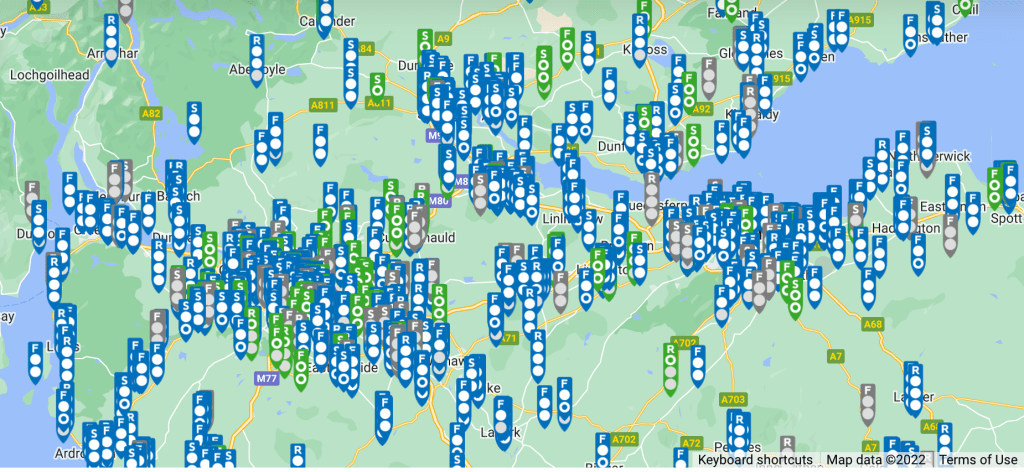 However, the Disclosure programme disputes this rosy picture, finding none of the five found not working on the North 500 was listed as faulty that week. By checking all points via the app, they found 100% of Scottish Borders and 95% of Highland points had been faulty that month and some 500 (i.e. 25% of the network) were unavailable. They reckoned almost half of all points deserve anything close to a 100% record. When interviewed about this, Scotlamd’s Transport Minister said: