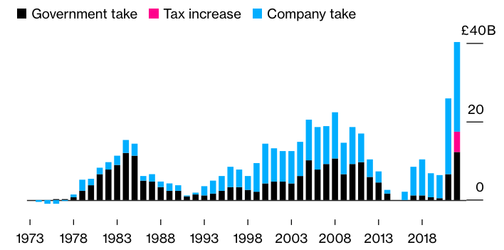 Company Profits and Treasury Take from North Sea Oil & Gas (Source: Bloomberg[1])